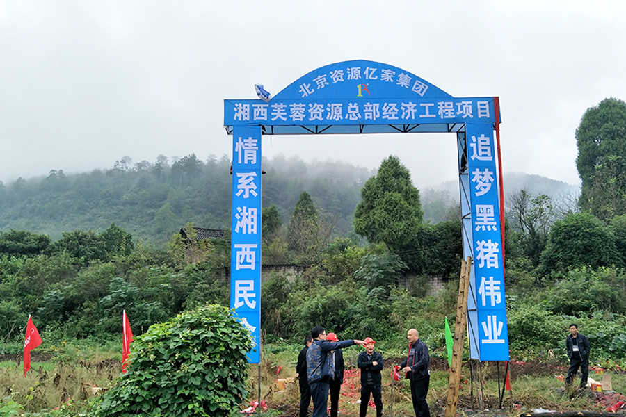 集团副总裁刘忠贻先生、湘西芙蓉资源副总裁徐国建先生、湘西芙蓉资源财务总监李彪先生、湘西黑猪养殖总司理鞠积光先生等一起庄重宣读誓词,奏乐鸣炮为项目开工涤讪。